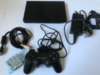 PS2 Console Slim Black - Doesn't read gold discs but does read all other , Includes All cables + 1 Third party Controller , sold unboxed but securely packaged.