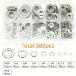 580pcs 304 Stainless Steel Flat Washers Set Mixed Sizes